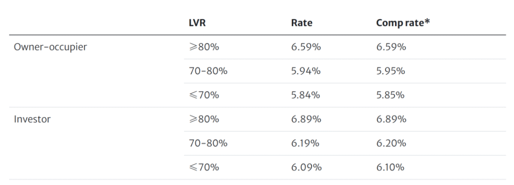 此優惠僅適用於貸款價值比(LVR)≤70% 的借款人。若首付款較低或房屋凈值較少,適用的利率則為5.94%(比較利率* 5.95%)。此外,該優惠僅限於線上申請,不適用於通過貸款中介或分行辦理的客戶。